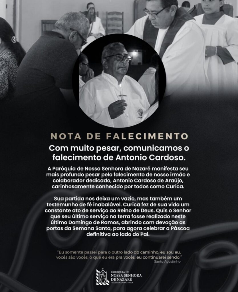 A Paróquia de Nossa Senhora de Nazaré divulgou nota de pesar lamentando profundamente a perda: